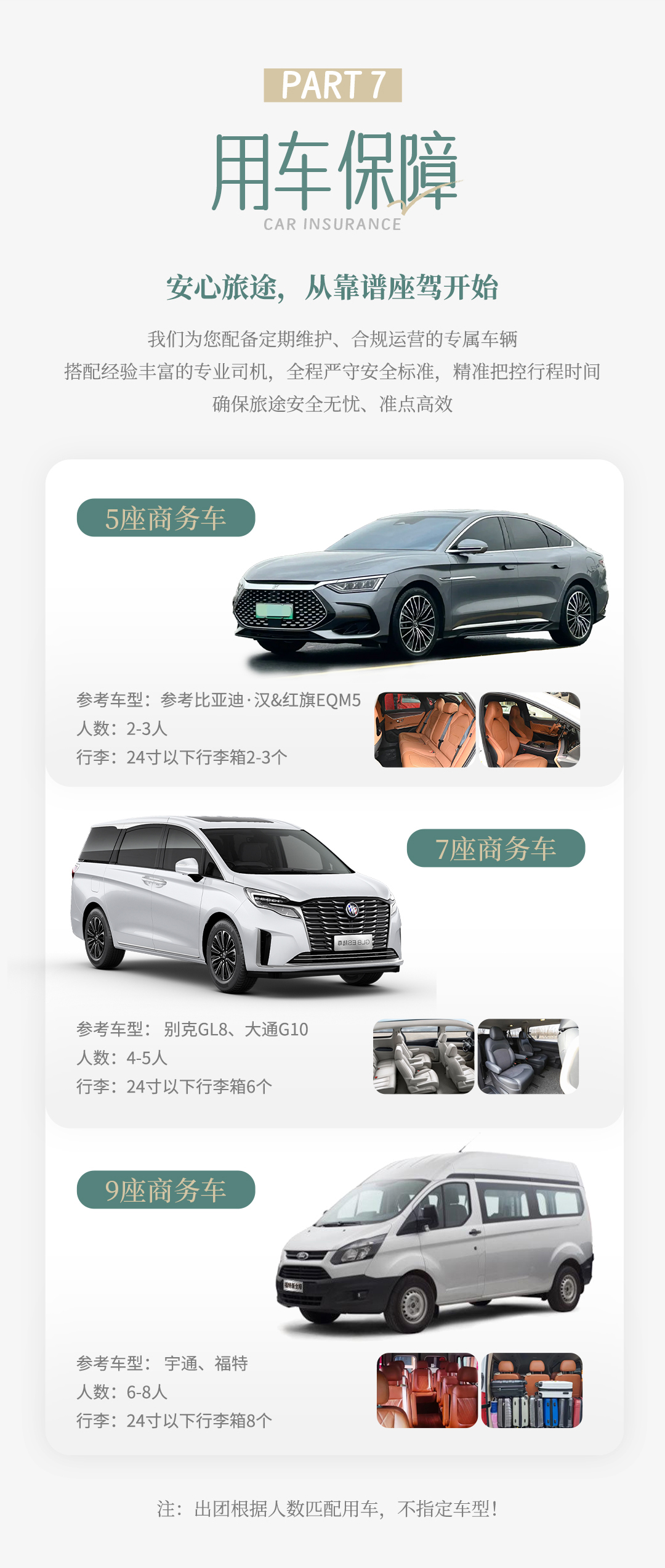 6-8人安排 九座商务车(司机兼管家);