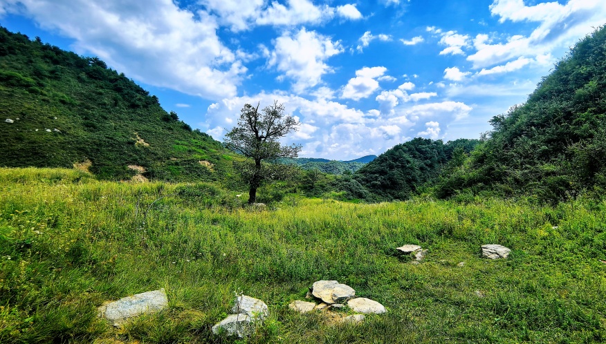秦岭的又一“阿勒泰”,在秦岭不只是只有高山上才有草甸,该草甸位于华台子村后,当地人常在此放牧,成群的牛羊和独特的地貌,在蓝田白云的映衬下简直就是一幅美丽的画卷。
