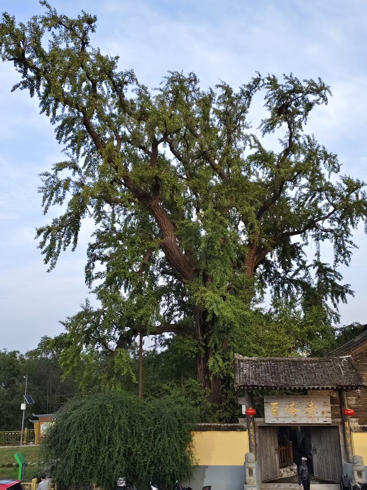 百塔寺内大雄宝殿后有一株千年银杏,相传为隋代栽植,距今有1700多年历史,被誉为“中国第一银杏树”“千年活化石”。该树现在树高30余米,树围18米,树冠面积100多平方米。如今的百塔寺仅存百多平方米的小院立于天子峪峪口的村落口,隆和老和尚带领僧众弟子1986年起开始修复百塔寺,并保存有了现在的遗迹佛寺——不留一塔的“百塔寺”!