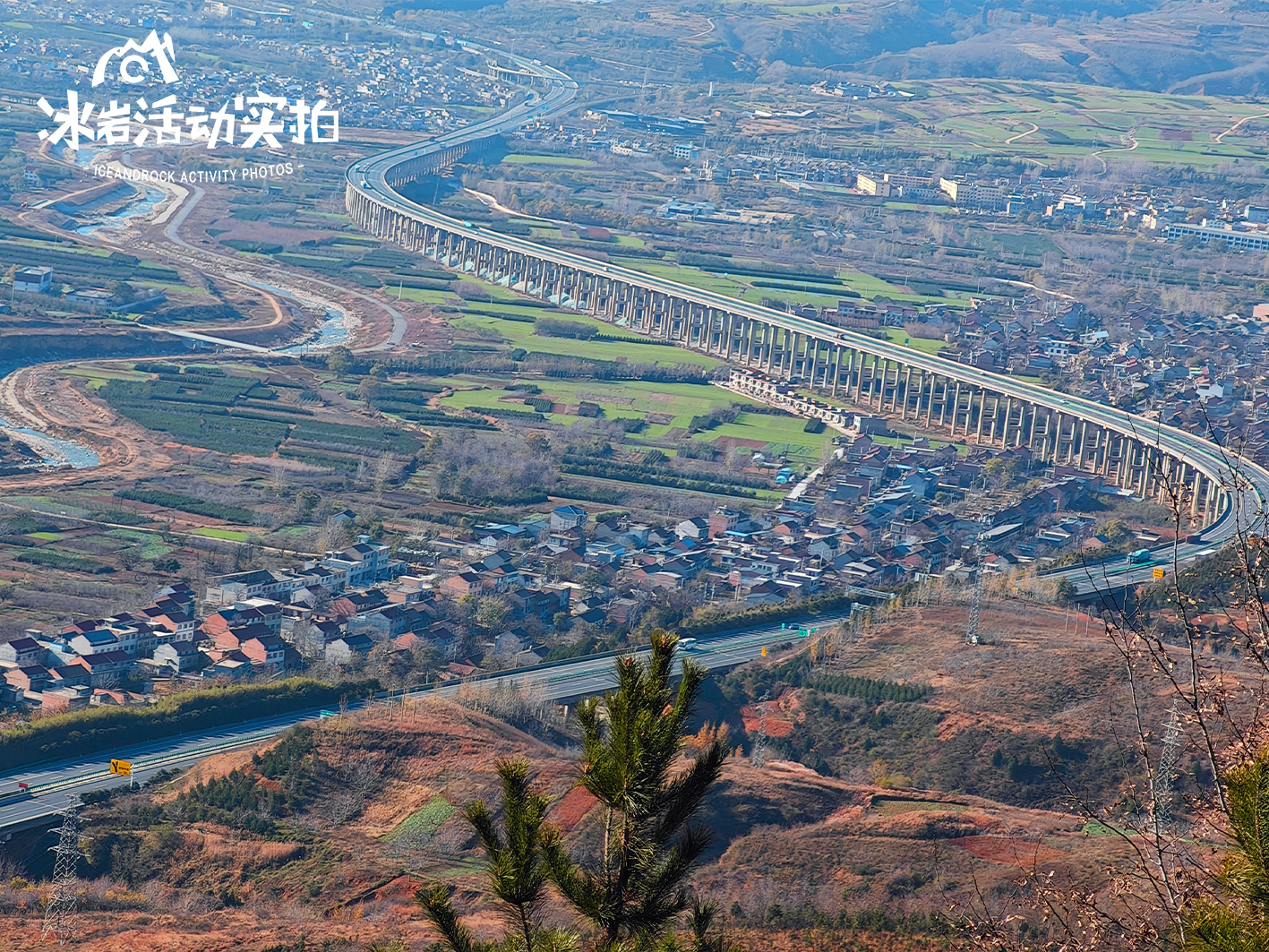 而转身之间,S 型的玉山特大桥跃入眼帘,流畅的线条如同一笔浓墨重彩,横跨在大地之上。从草甸俯瞰,大桥与周围的山水融为一体,构成了一幅独具匠心的画卷。每一个角度都是绝佳的取景框,随手一拍,皆是大片质感。在这里,自然的灵动与建筑的雄浑交相辉映,徒步其间,仿佛置身于一场绝美的梦境之中,让人流连忘返,沉醉不知归路。