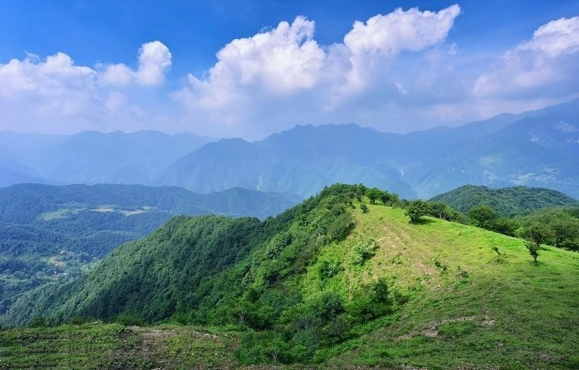 沿着蜿蜒的小径徒步而上,直至那片开阔的草甸。脚下,芒草在微风中轻轻摇曳,似是在低声诉说着秋的故事。极目远眺,天明山的闵家山与三凤山巍峨耸立,连绵的山峰勾勒出大地的脊梁,在云雾缭绕中尽显神秘与壮美。