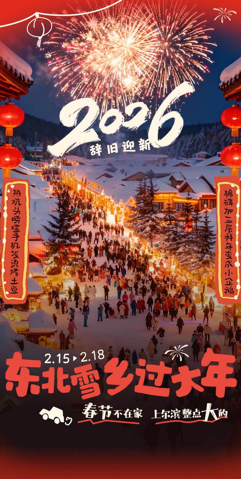 3、赠送雪乡除夕活动(雪乡大集-蹦迪活动-花街巡游-烟花秀,如遇景区原因或大风等天气原因不举办不退费用)。