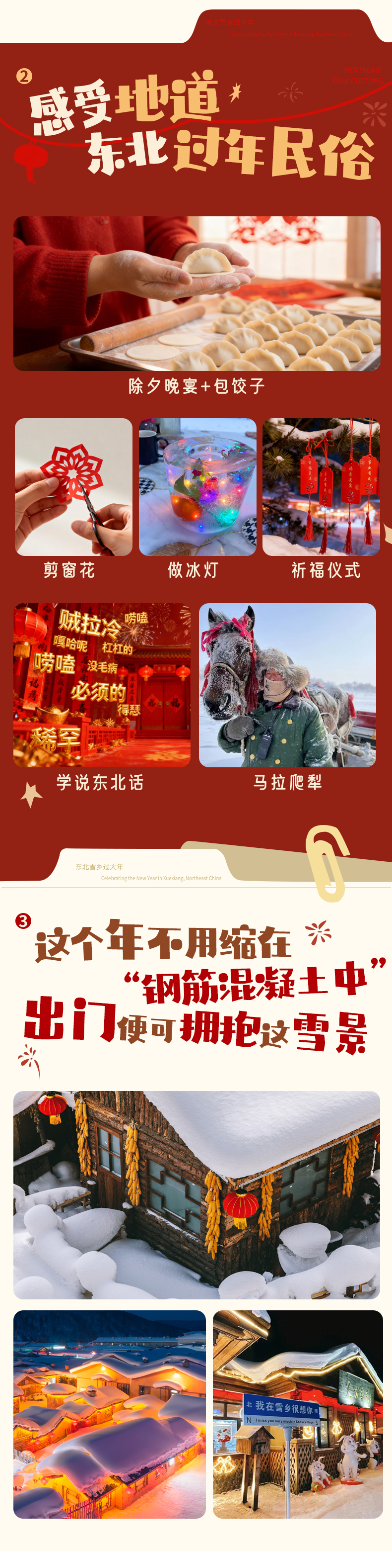 4、雪乡过年的雪地蹦迪、花车巡游活动、春节烟花等活动行程以景区开放情况为准,如未举办则取消无退费