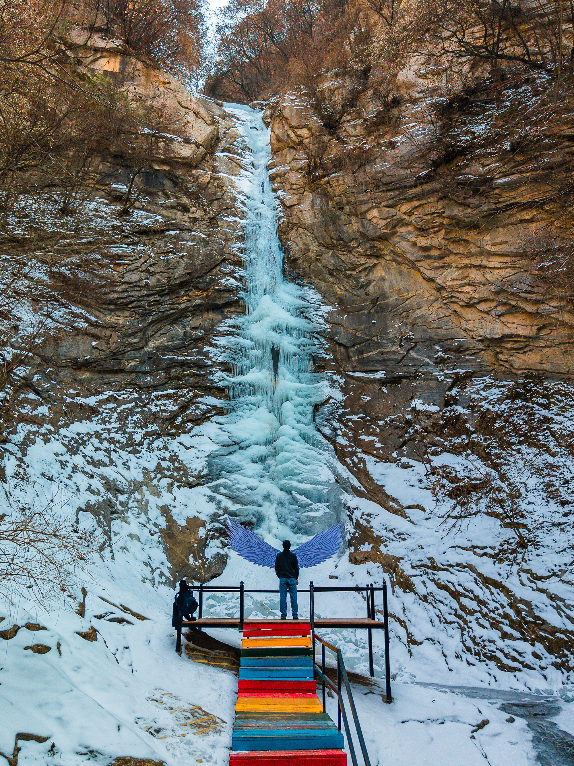 石门峡是景区冬日的主场,冰瀑盛景,自崖壁垂落如凝固的银河,千姿百态的冰柱,冰凌,冰花层层叠叠,金蟾湖堪称冬日顶流,蓝色的冰面纯粹又梦幻,穿着亮色衣物,站在冰湖边随意定格,仿佛步入奇幻的冰雪王国。