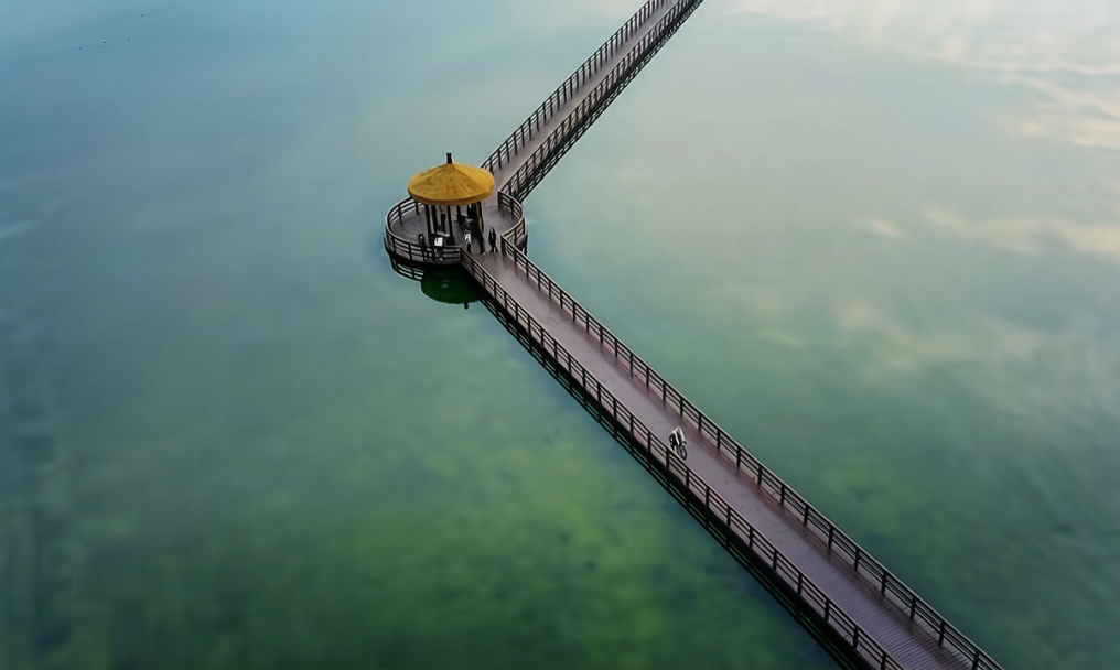 盐工收工的时刻,正是奇迹的开始。斜射的光束穿透盐雾,将结晶滩涂变成流动的金属湖。建议登上池神庙遗址高台,看霞光为唐代石雕披上羽衣,盐山影子在七彩盐田中拉出细长的“马尾云”。