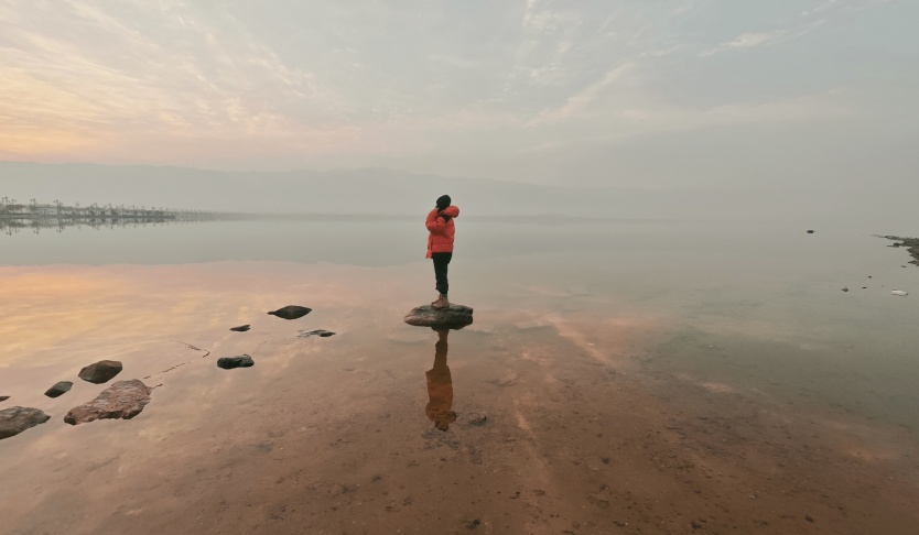 日落半小时后别离开!盐晶开始释放日间吸收的热量,地表泛起银蓝色微光,与天际最后一缕玫红形成“冰与火之歌”。此时穿浅色衣物站立盐滩,会收获发丝镶着光晕的剪影大片。