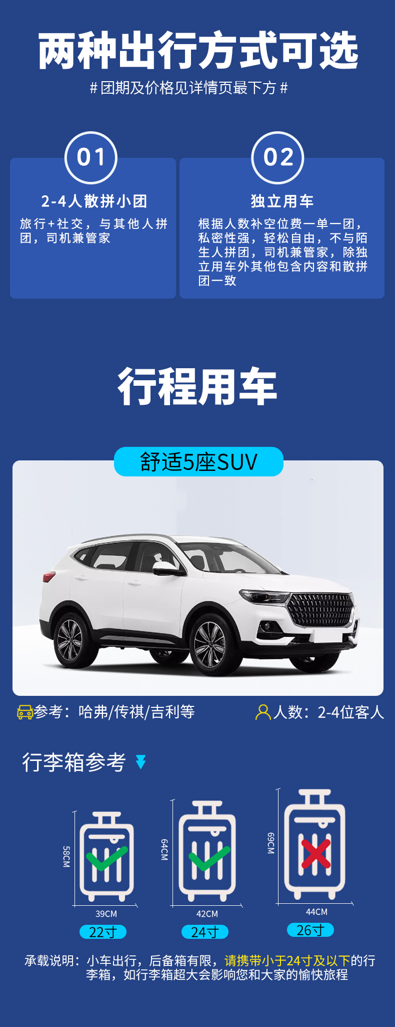 4、行程安排可能由于火车的抵达时间不同而进行灵活调整,以司机师傅的安排为准。
