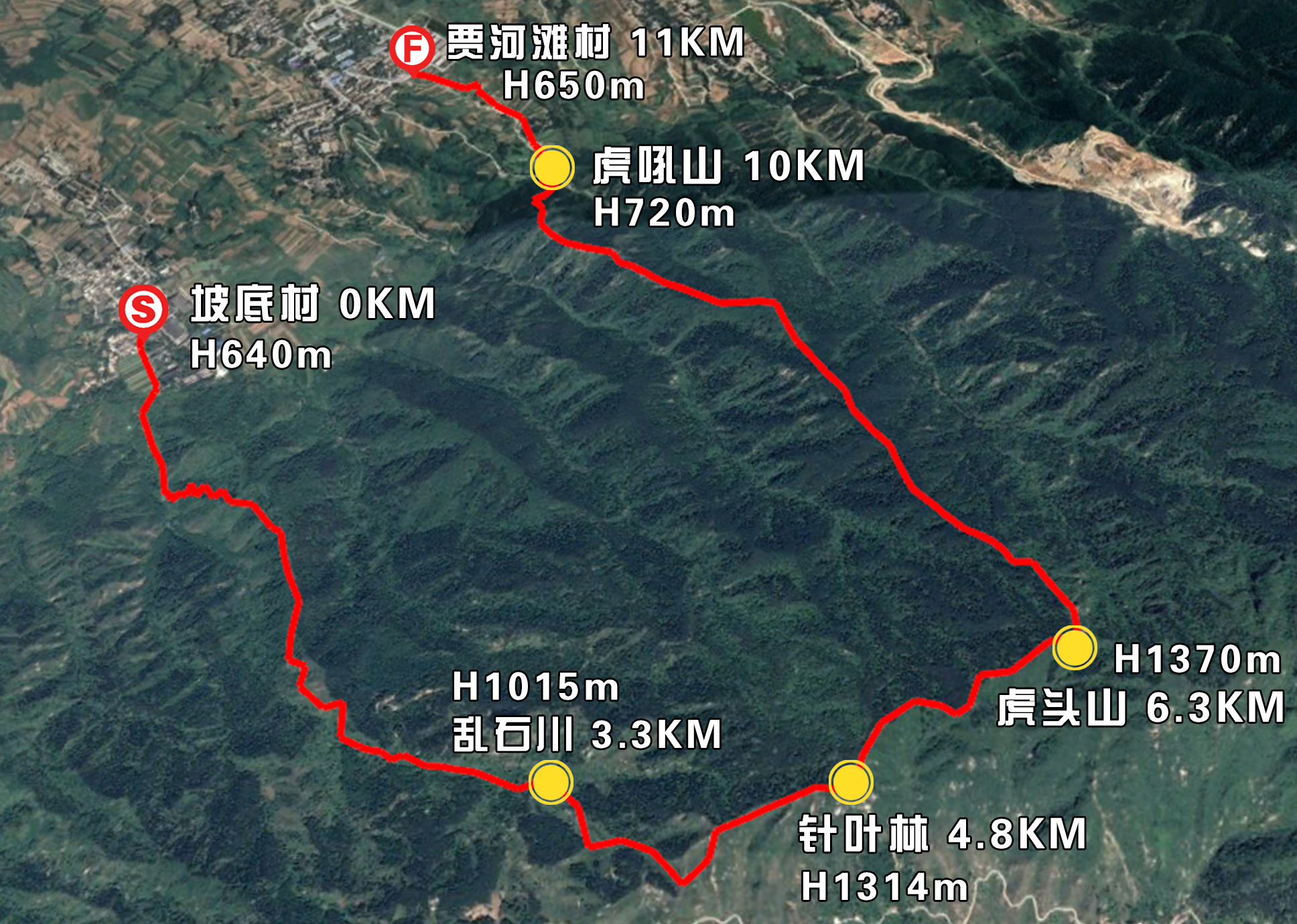 09:00 到达坡底村,进行热身活动(一路缓坡上山)
