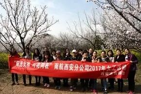 杏花谷的杏花适时盛开,粉红色的、白色的,个个小小的花朵上喷发着春天的气息翘首以待,就像在等一个又一个夺目的阳光女神,这群阳光女神就是南航西安分公司的女员工们。