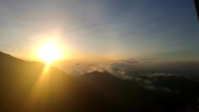 清晨六点半的太白山,晨曦微光,太阳缓缓的从远方的云海中升起,白云在阳光的照耀下披上金装。云海、山峦、日出,一幅自然勾勒的壮美画面。