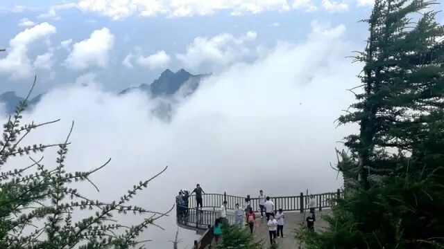 大文公庙云山云海,洁白的云环绕四周,从眼前飘过。