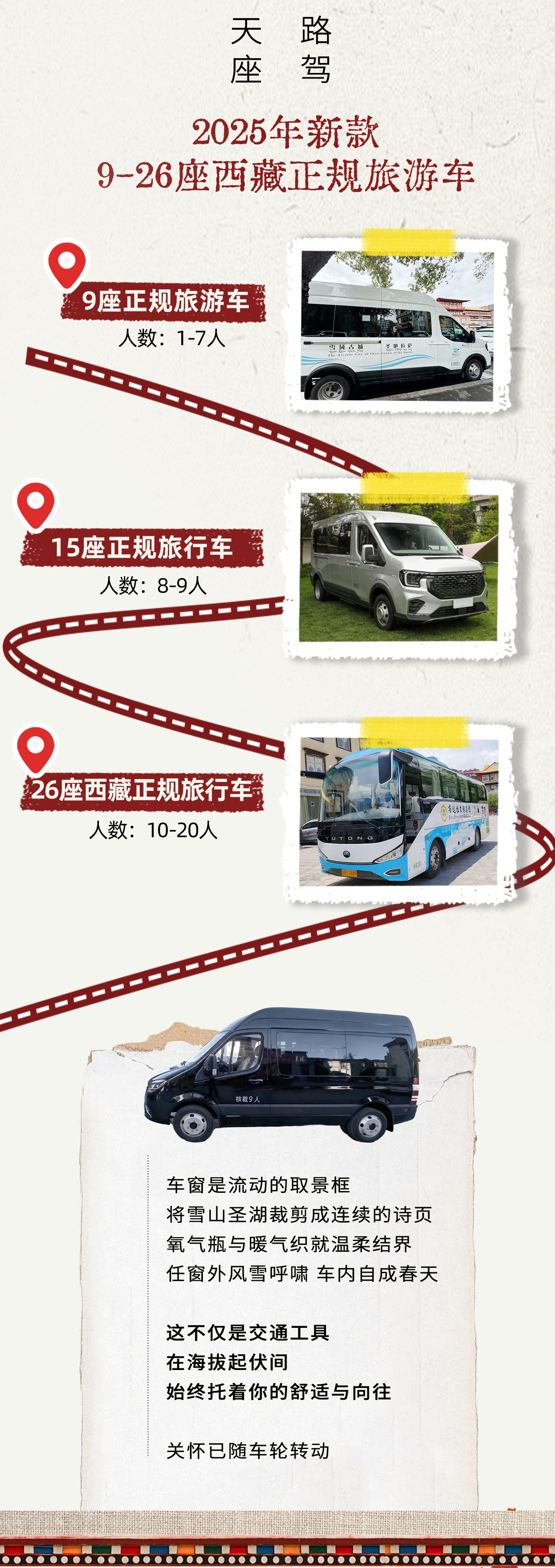 1、【交通】全程正规9座-26旅游牌照用车的包车费用,同时包含每个座位的保险,全程油费,珠峰进山费,司机食宿补贴等。