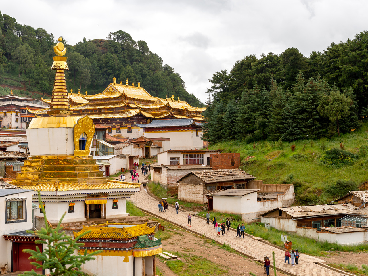 阿坝县-(45km,约1.5h)莲宝叶则-(120km,约2.5h)世界第一大转经筒-(125km,约2.5h)-格尔底寺-郎木寺镇