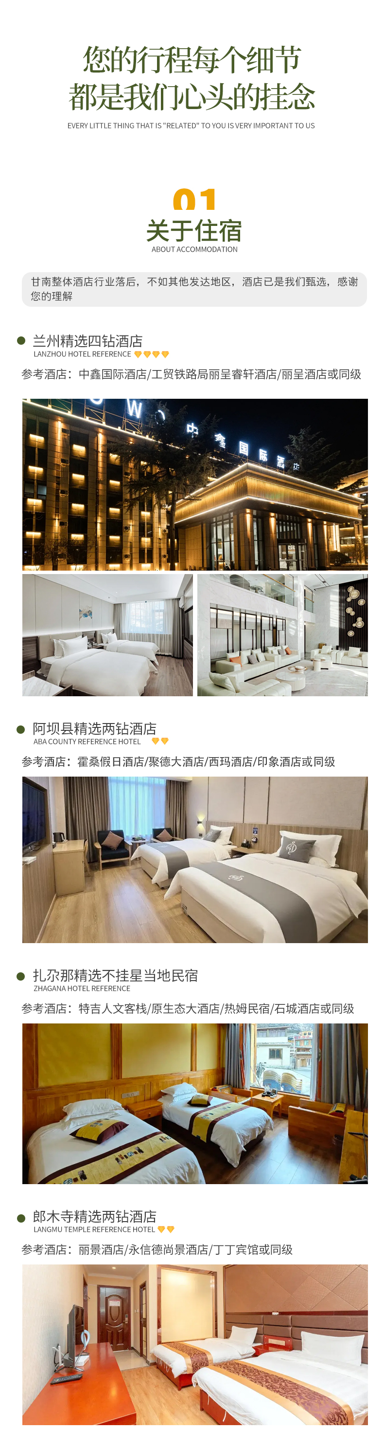 备注:甘南经济发展较差,酒店已经是我们精心挑选的,但是和大城市同级别酒店相比各方面略差一些,敬请您谅解;