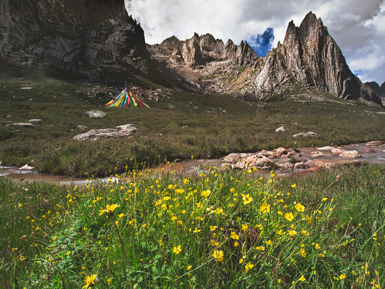 09 : 00适时抵达【莲宝叶则】,这里是藏区著名的神山,挺拨的千刃石峰是其雄伟的风骨,晶莹闪亮的湖泊是她宝石般多情的眼睛。世上的行者分两种,一种是来过莲宝叶则的,另一种是正在赶来途中的。与年保玉则同属巴颜喀拉山,一个在青一个在川。我们来到这片秘境中的秘境,朝拜这安多地区神山之首。