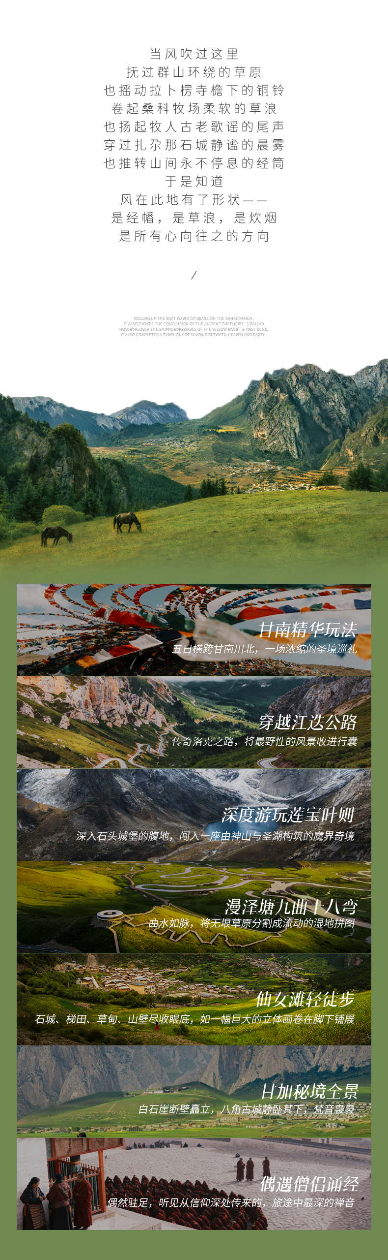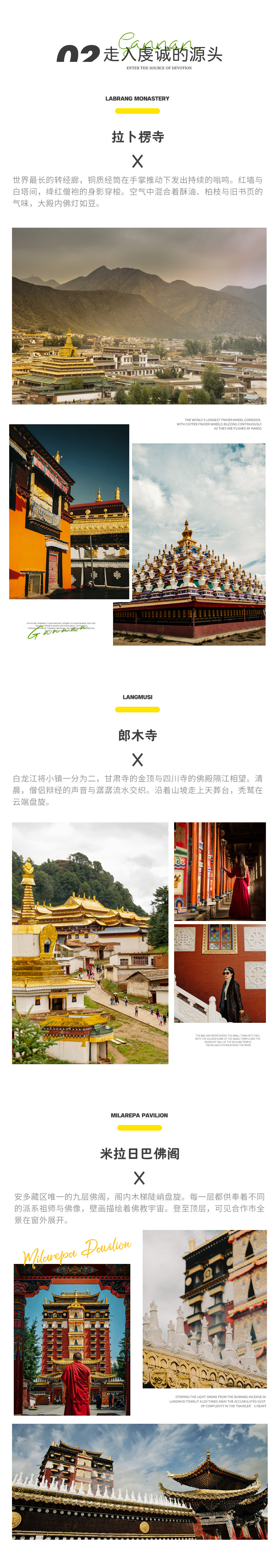 郎木寺-桑科草原(180km,约3.5h)-拉卜楞寺-(15km)甘加秘境全景(远观)-(240km,约3.5h)兰州解散