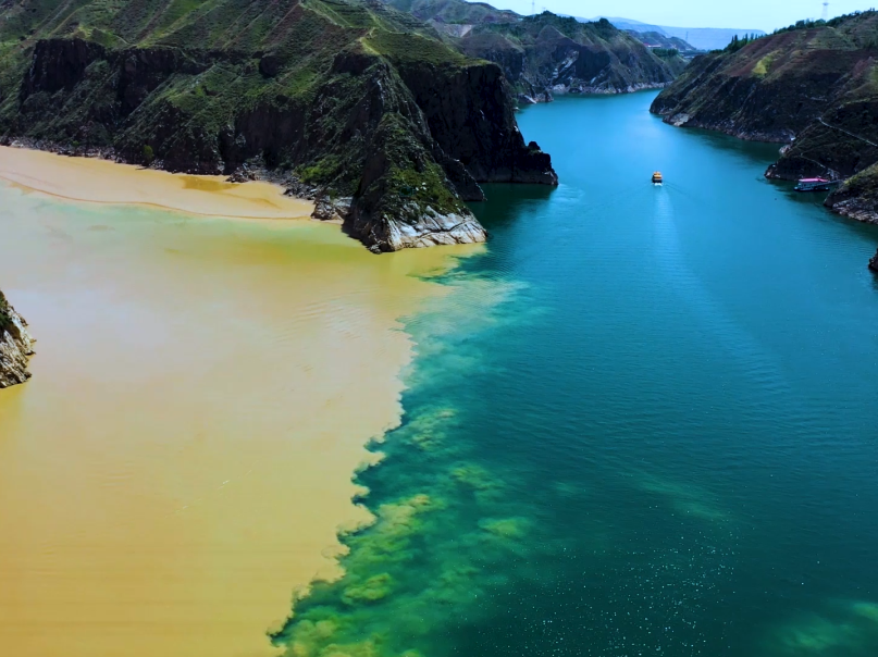 10 : 00抵达【刘家峡水库】这里也被称为“塞上小江南”,黄河自西北入境贯穿临夏北部,提起黄河人们多半的印象都是黄色的,但在这里看到的黄河却是蓝色的,蓝色黄河与黄色的洮河以“Y”字形交汇,泾渭分明行程“黄洮交汇”的天下奇观!