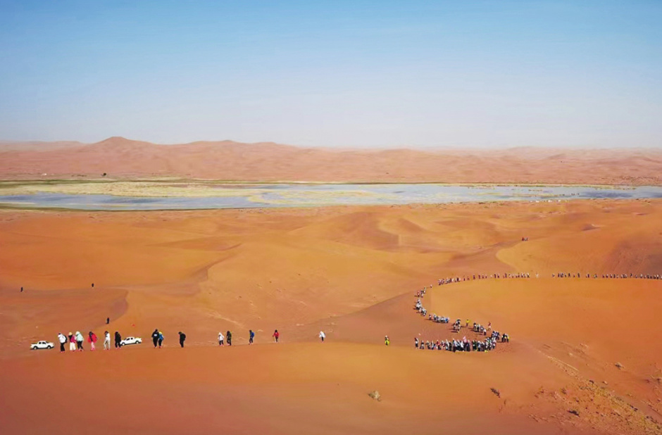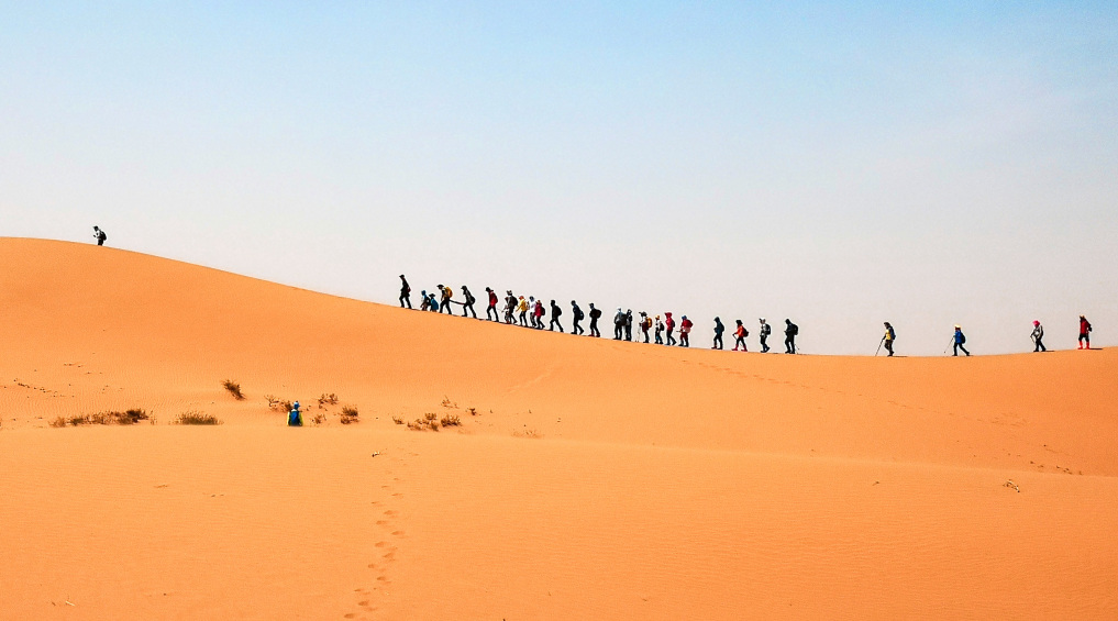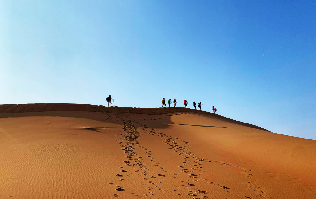 沿着连绵起伏的沙丘,一直徒步到沙漠腹地