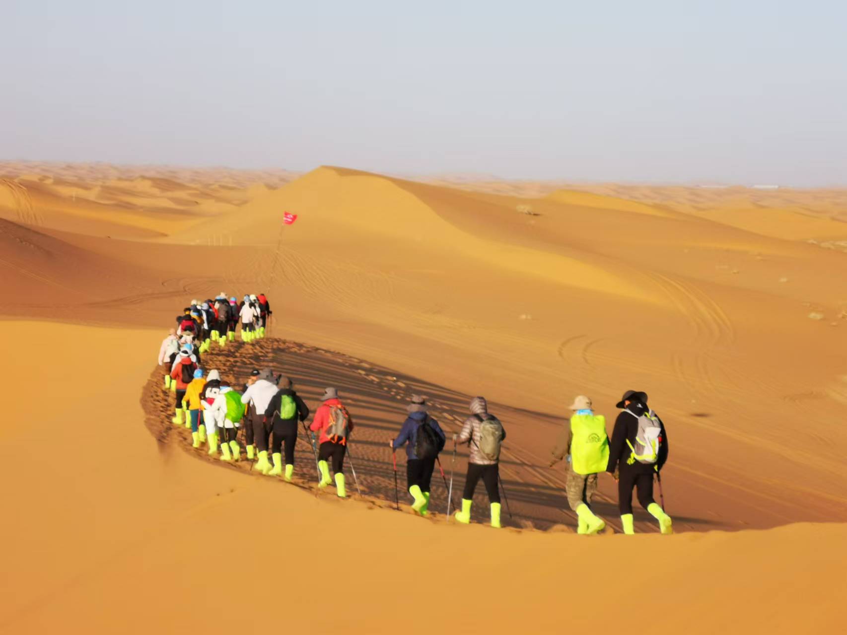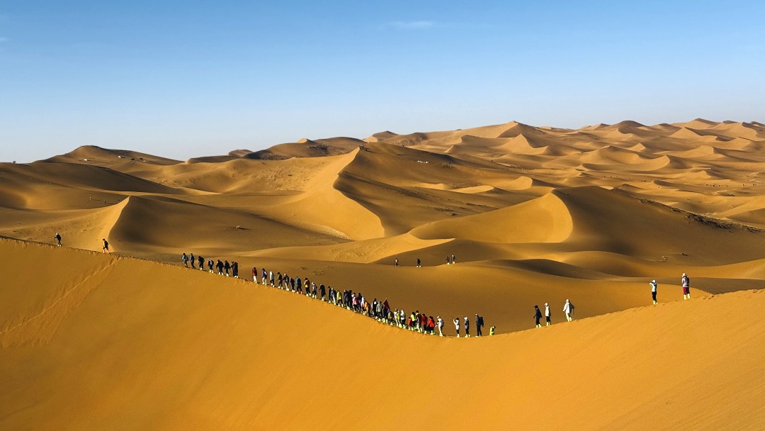 沿着连绵起伏的沙丘,一直徒步到沙漠腹地
