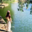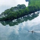 这里的蓝,蓝醉了湖、蓝醉了天。水鸟拍打着水面,荡起了涟漪。落日余晖,恍如世外桃源。