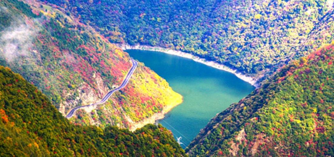 黑河峪木藤寨秋日暖阳,俯瞰黑河水库美景