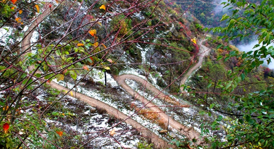 宁静的乡间土路,间或的林荫以及铺面路面的落叶,零星的农舍,山坡播满冬麦的农田,也不失为您镜头定焦的美景。