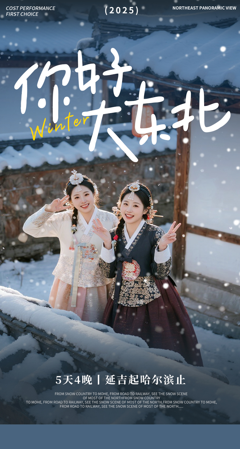 全天 延吉,是一座充满朝鲜族风情的城市! 漫步街头,仿佛置身韩剧片场:满眼双语招牌闪耀,朝鲜语呢喃萦绕耳畔。西市场的五彩斑斓、大学墙的青春活力、民俗园的华服倩影... 这座中朝边境的活力之都,用最浓烈的色彩、最炽热的美食、最独特的腔调,让人沉醉!今日我们全天结合,大家可以直接购买从全国各地飞往延吉朝阳川机场的机票,也可以购买抵达延吉西的高铁票。