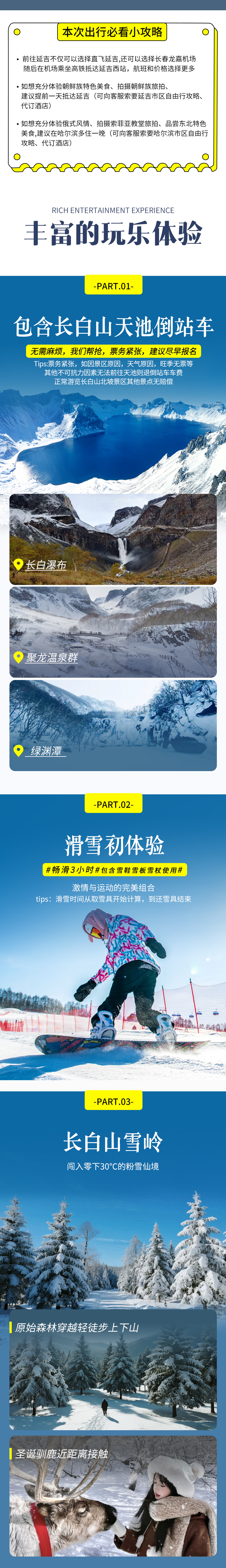 5、长白山由于冬季火爆限流前往,票务紧张,建议尽早报名好提前帮抢长白山天池倒站车票;如因景区原因、天气原因、旺季无票或者其他不可抗力因素无法前往则取消天池游览,退天池倒站车费用其他景点正常游览无退费无赔偿。