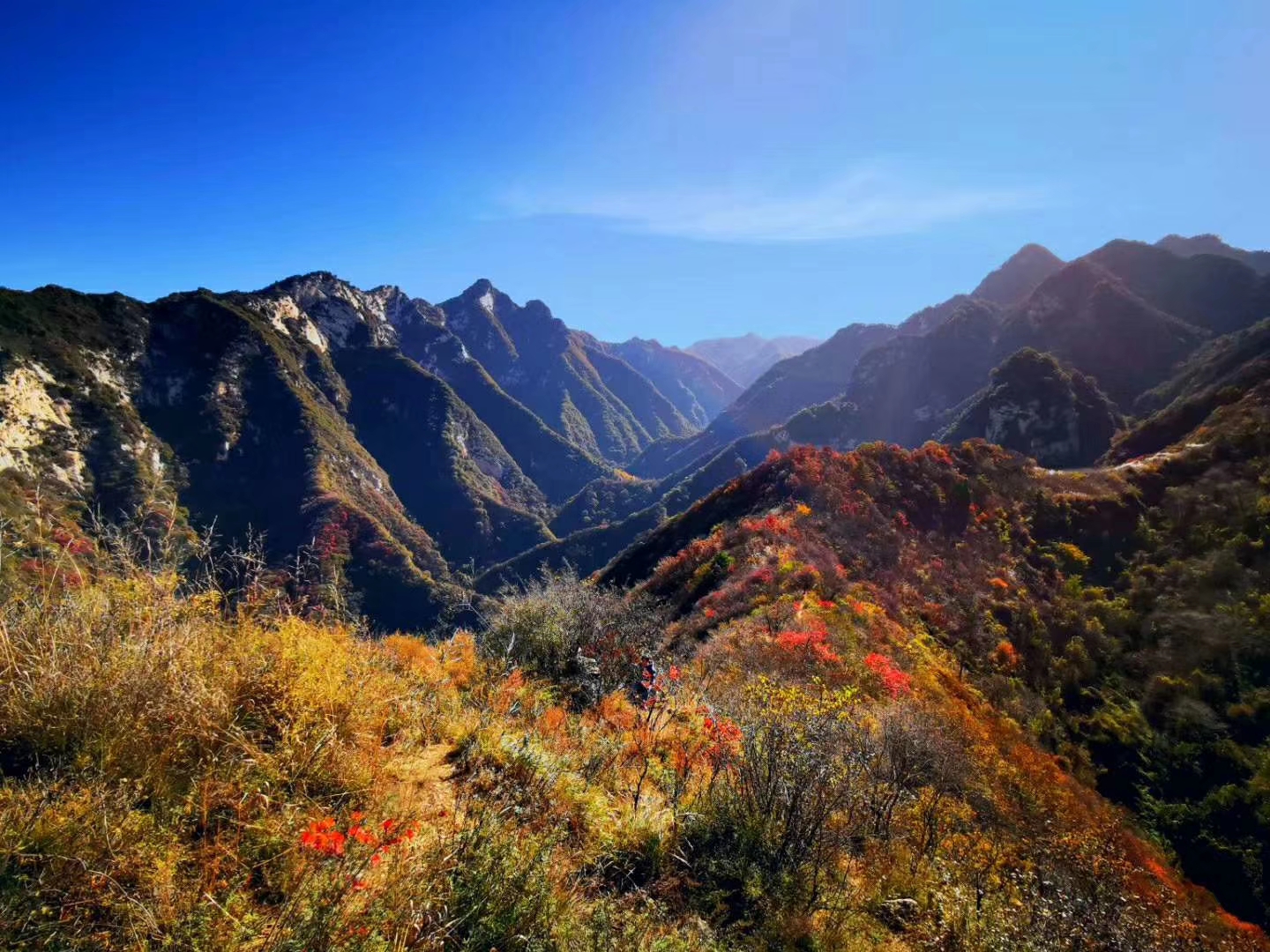 午餐结束后穿越线路坡度较大,有一定难度;不想穿越者可选择原返下山。