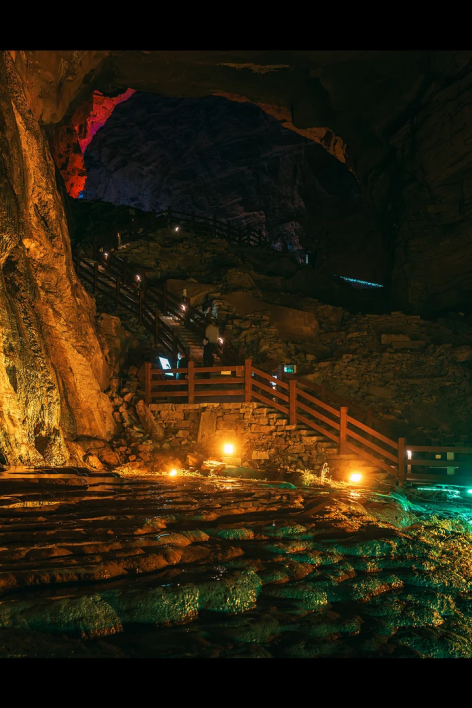 D4:恩施 - 腾龙洞 -云端下午茶歇 - 烟花秀 - 鹿院坪全天 容积世界di一的洞穴秘境,集齐水洞、旱洞等七大景观,堪称 “中国洞穴天花板”!时间赶巧,洞内还能看到土家实景歌舞《夷水丽川》,天然溶洞剧场 + 顶级舞美,边赏奇景边品民族风情。 洞内常年恒温14-18℃,简直是避暑天堂!一路走一路拍,巨大的空间感让人显得渺小,每一步都是景。暗河奔流的声音在深处回响,神秘感拉满。 青山不语,茶香氤氲。静坐此间,听鸟鸣山幽,任烦恼随风远去。 这场藏在山川怀抱里的景观下午茶,可细品精致茶点,尽赏万米绝壁长廊云雾缭绕的壮阔,邂逅 “清江升白云” 的奇景。亲子、闺蜜、家人打卡拍照,定格云端惬意时光。 举碗、祈福、一饮而尽!“哐当” 一声脆响。 摔出的是千年土家的山野豪情,暖的是胃,更暖的是心。 这一习俗源自恩施土家族古老传统,是祭祀祈福、节庆宴饮等重要场合的待客礼俗。酒尽碗碎,以清脆声响昭显诚意,以洒脱姿态传递勇气,藏着土家人淳朴热烈的处世之道。 温馨提示:美酒虽好,切勿贪杯,适量饮用才能尽享这份传承千年的山野快意! 一束烟花骤然升空,划破鹿院坪峡谷的静谧长空。星火倾泻而下,与漫天星光交相辉映,点亮整片山野。 这一瞬的璀璨绽放,是峡谷写给旅人最浪漫的诗行,也是藏在秘境里的限定惊喜。