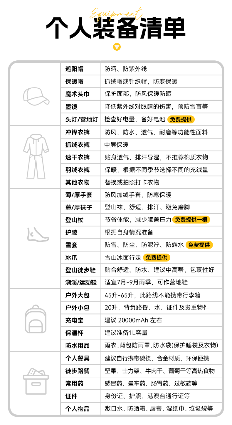 6.向导仅负责大本营至山顶路段的带路,不是保姆式服务,登山活动必须具备一定的体力基础,报名前请自行评估。