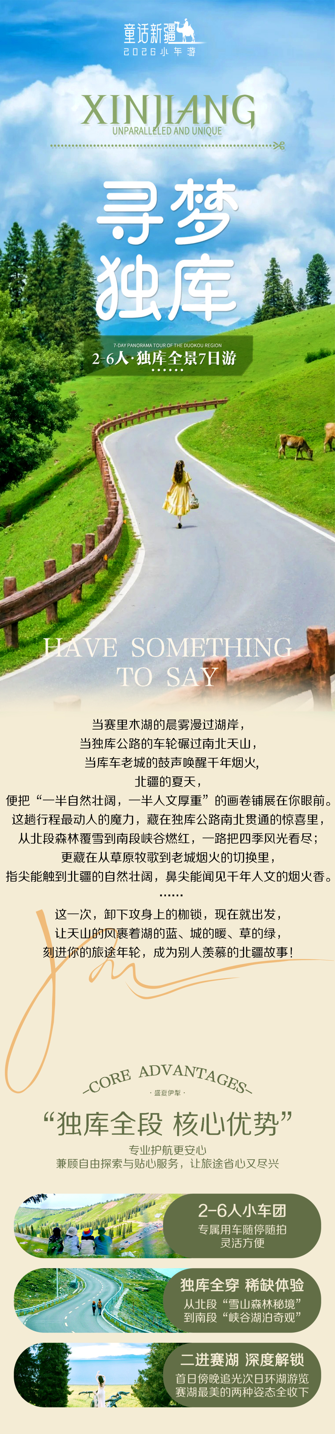 【寻梦独库】穿越天山草原,新疆轻奢小团7日行(2人起报,请先联系客服)