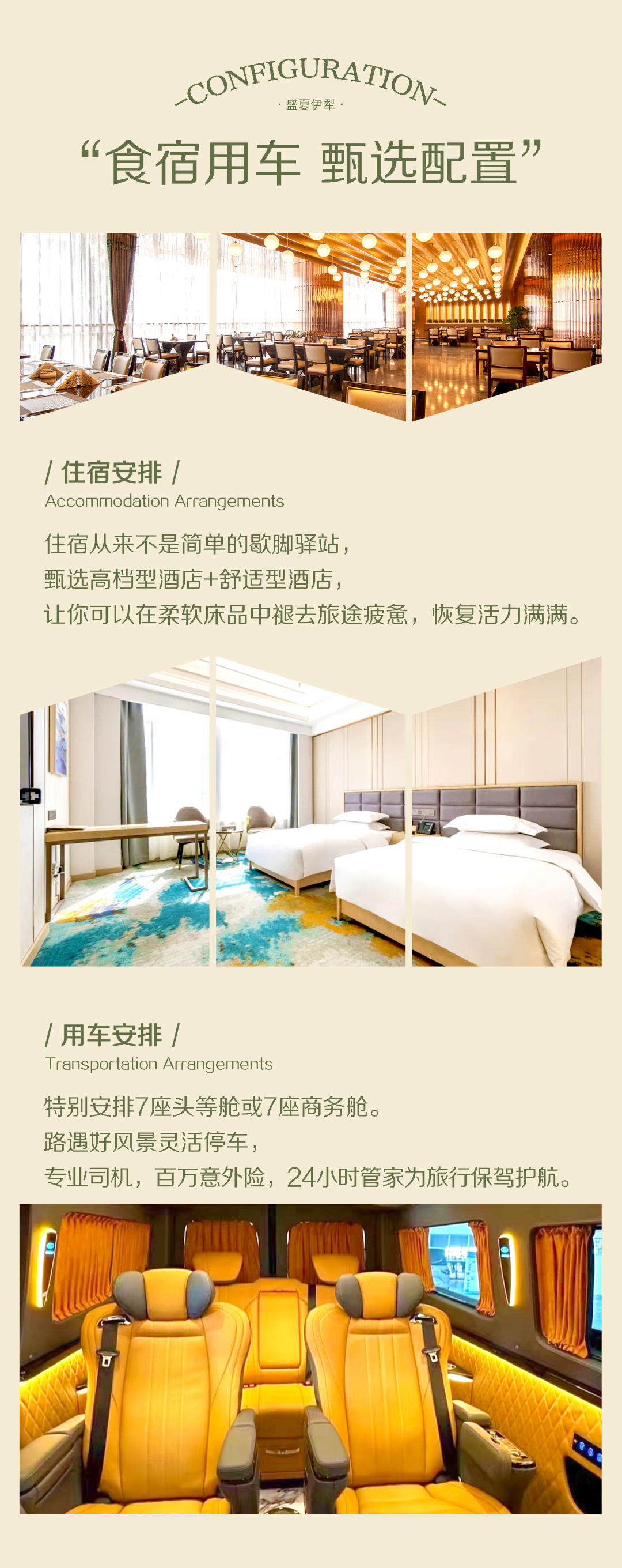 3. 赠送集合日当天免费接机/接站服务(2人起赠送,提前抵达者请自行前往酒店)。请提前至少3天告知航班/车次信息,如未告知,视为自动放弃。默认安排拼车(1小时内),如您不想等待,可自行打车或搭乘地铁前往酒店(费用自理)。抵达乌鲁木齐机场/火车站后,请主动联系接机人员确认上车位置,如出现等候的情况,请给予谅解。不含送机及送站服务,送机(站)服务:5座车100元/辆、7座车200元/辆,如需要请提前至少1天告知工作人员。
