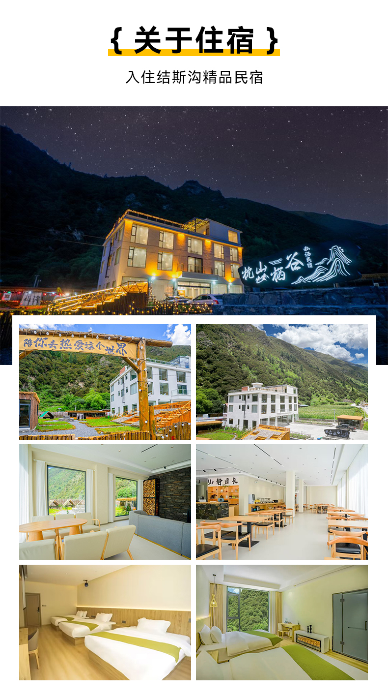 2.住宿:按行程所列标准入住。(其中:斯沟住宿一晚(标间或三人间)或向导家);结斯沟民宿默认与其他同性拼房,如果拼房不成功,需补单房差160元/人。