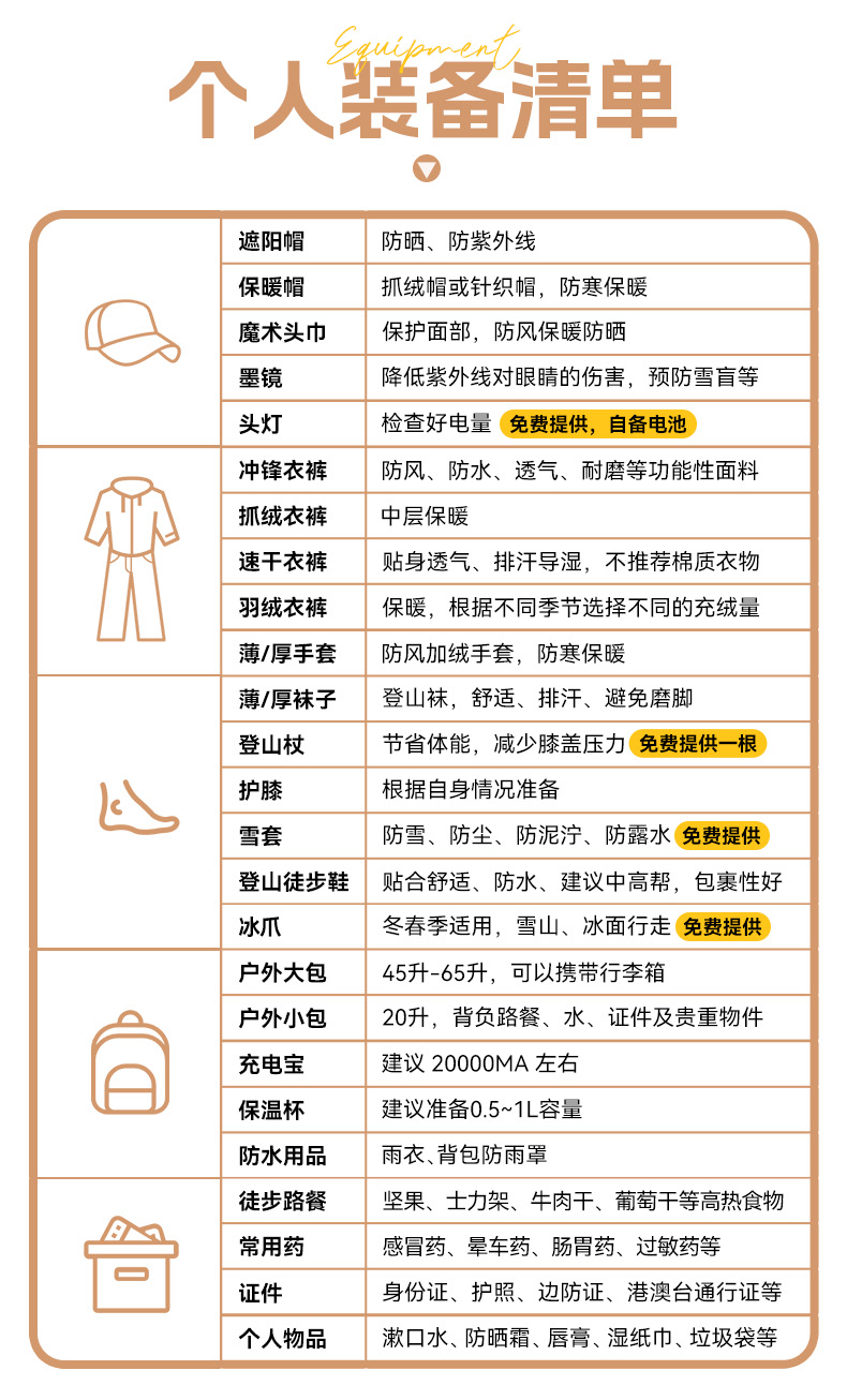4.涉及高原地区,由于当地医疗条件有限,每个人都是自己健康的第一责任人,请在出行前确认近期健康。