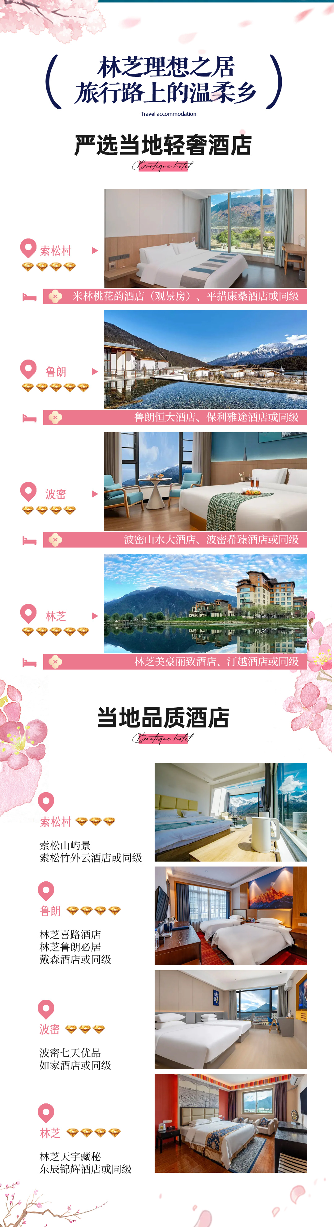品质型酒店:林芝天宇藏密酒店、林芝东辰锦辉酒店或同级