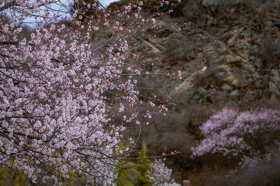 雅鲁藏布大峡谷是3.4月赏桃花的首选之地。两岸的山坡上,桃林与麦田交相辉映;三面环山的桃花,江水倾泻而下,涧边长满了野生桃树,只可远观不可近玩。