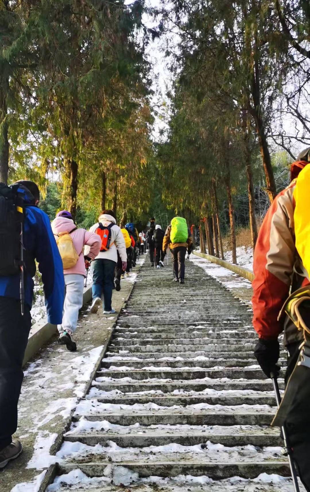 3、行:25L左右小背包,登山杖2根、护膝、雨披、头灯或手电必带、小冰爪、雪套