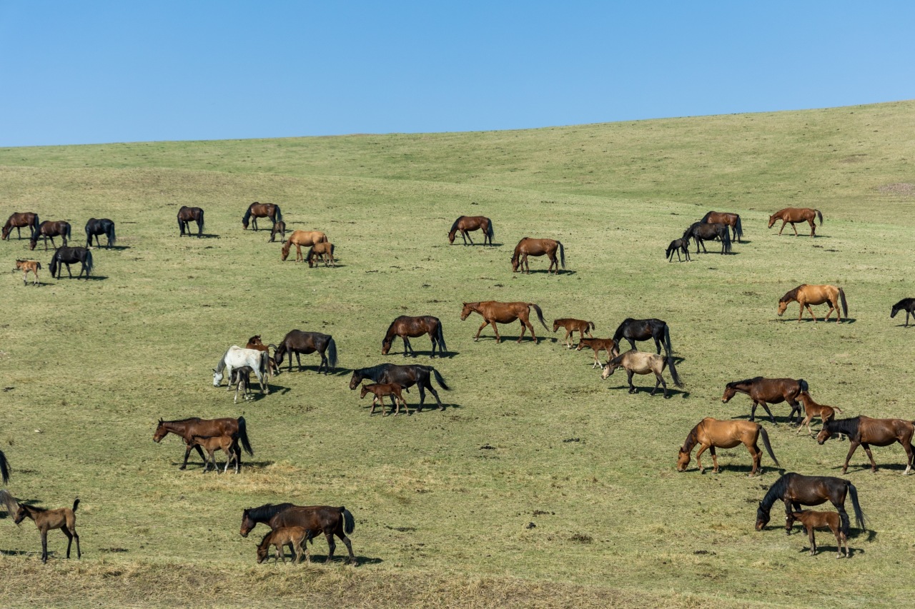 沿途河流蜿蜒流淌,映照着万千风景,阳光透过云层,天空湛蓝透明仿佛能摸到它的边缘。远处山峦高耸,像巨人守护一方平安。我们缓缓行走其间,你会找到内心的宁静和前所未有的安全感,人与自然的界限变得模糊。每一位淳朴的牧民,可爱的牛羊,盛开的野花,都能轻易驱散你所有的焦虑和不安,带来洗礼与重生。