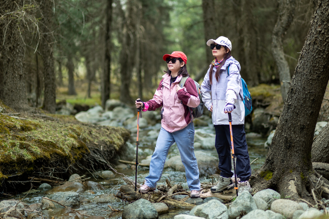 前往【八宝河】的沿途长满了野柳和刺槐,在河水的滋润下野蛮生长,倒映在河水中格外好看。徒步的过程中,你会邂逅森林里的小动物,也会惊喜于从未见过的菌类。和成群的牛羊擦肩而过时,恰巧阳光穿过树叶间的缝隙洒在脸上,心中充满了对世界的爱与感激。