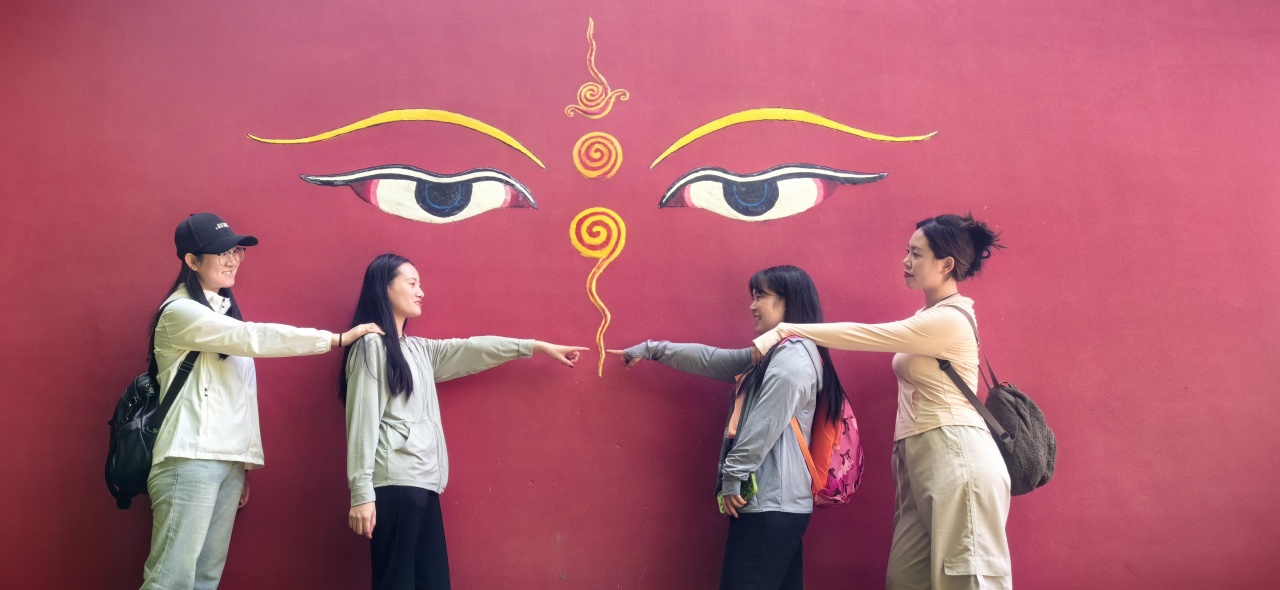 佛眼在佛教中代表着佛陀的智慧与洞察力,能照破诸法实相,红墙则营造出庄严、神圣的氛围,二者结合象征着佛陀的慈悲与智慧对世间万物的观照。