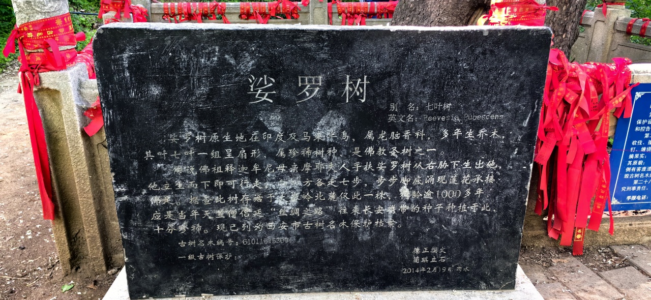 子午峪的这棵婆罗树仿若一座连接尘世与佛国的桥梁,让每一位到访者心生敬畏。据考证,它极有可能是千年前天竺僧侣沿着“古丝绸之路”东来长安时亲手种下的,现在这棵千年婆罗树已被列入西安市古树名木名录,也是西安市一级保护古树。