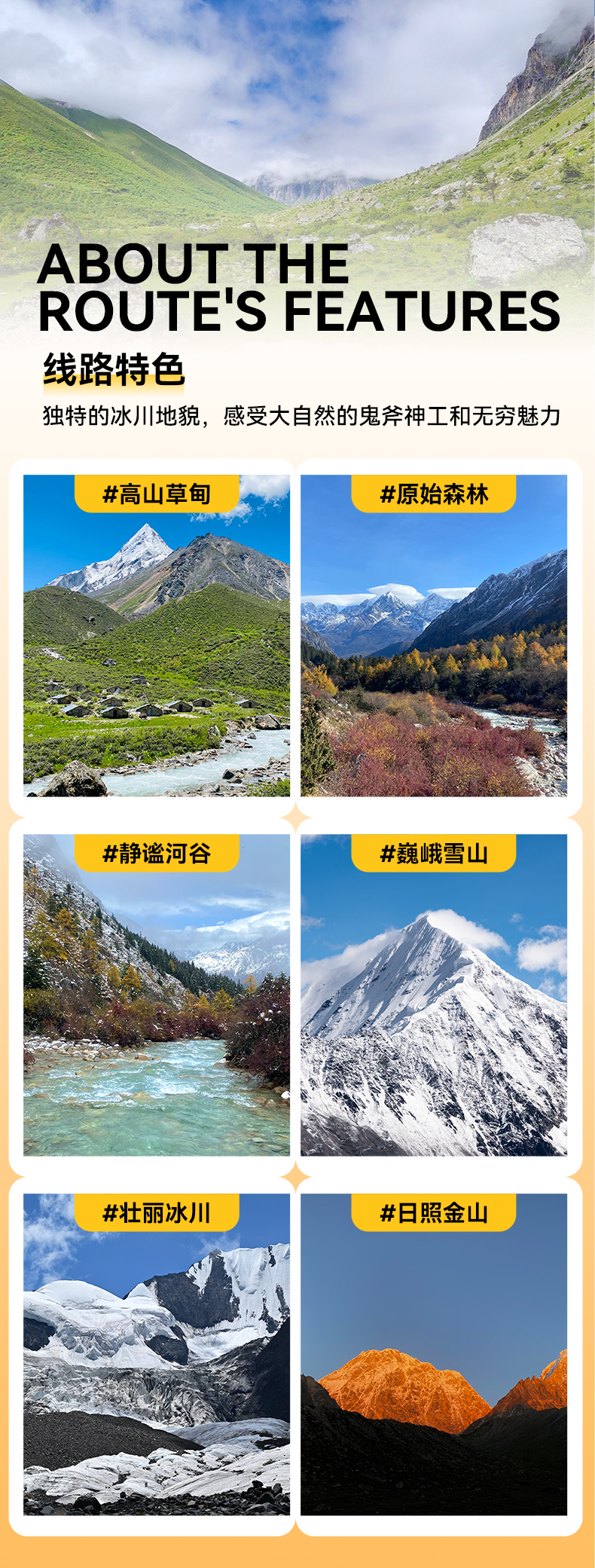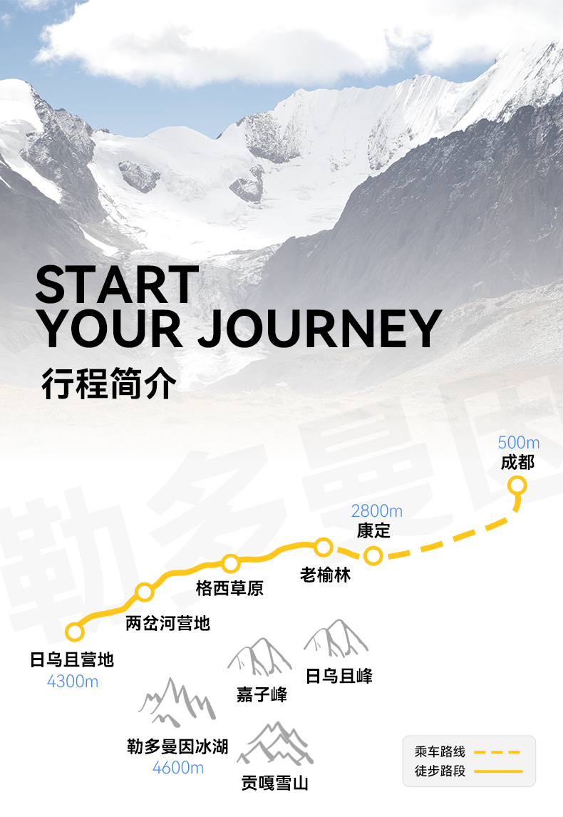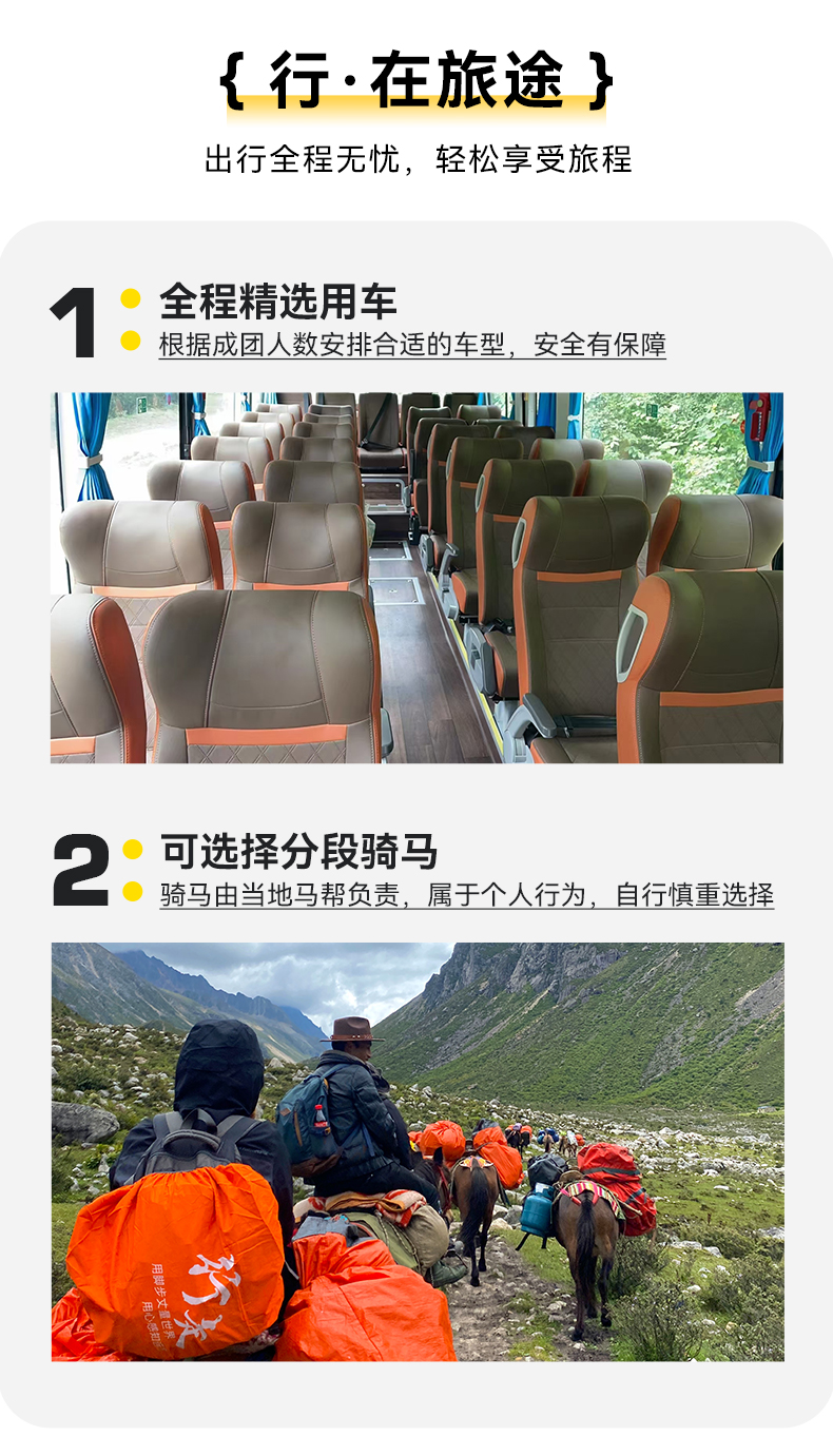 注: 非成都市区参加该活动人员建议提前一天到我们出发地附近住宿,以方便出行; 车程较长,晕车伙伴提前准备好晕车药物,当天海拔变化大,温差较大,请提前准备好徒步期间所需衣物等物品在身边。 节假日时间为12:00(错过发车时间需自行拼车前往)