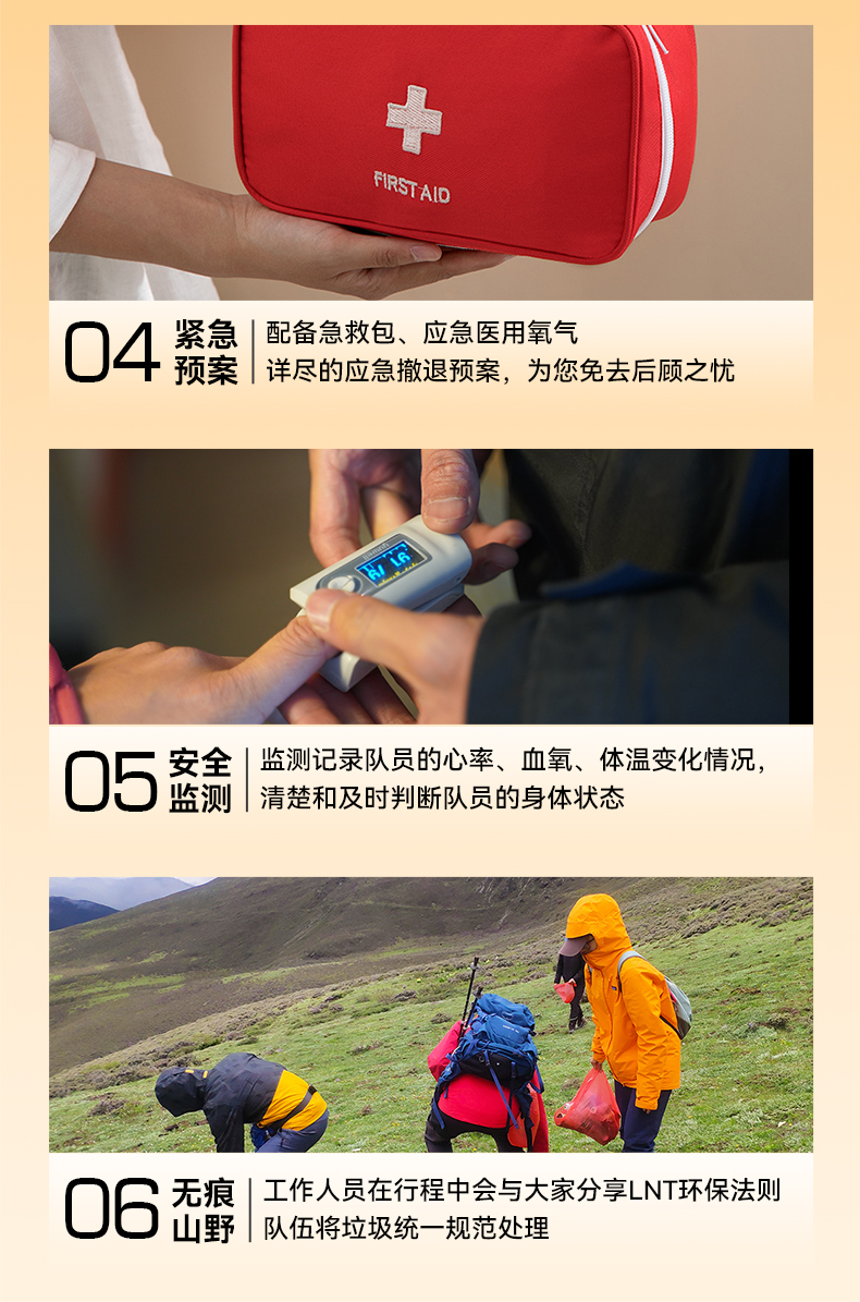 3、行程中因个人原因造成的额外费用支付,如高反120急救车,高反下撤马费,离团交通等;