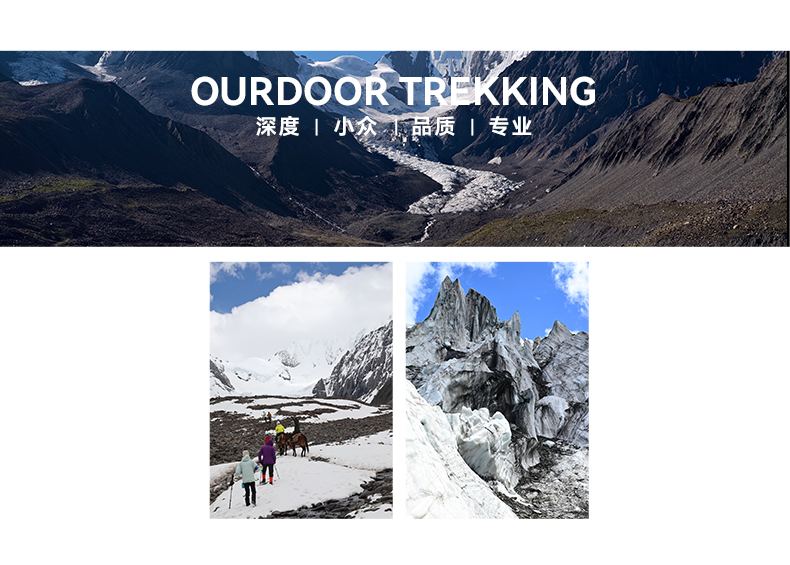 D3:日乌且营地 -(徒步约4km/约2h)- 勒多曼因冰川冰湖-(徒步约4km/约1h)- 日乌且营地 -(徒步约16km/约6h,乘车290km/约6h)- 成都全天 今日早餐后先前往勒多曼因冰川冰湖徒步探险,然后原路返回到格西草原,坐中转车回到老榆林村,回成都,今日行程基本上为下坡路段相对轻松,再回看自己来时的路感叹一路风光美景的同时又为自己的坚持而认可,约下午15点-16点抵达老榆林后乘车返回成都集合处散团,期待我们的下一次山野相遇。抵达成都时间约晚上22点左右。