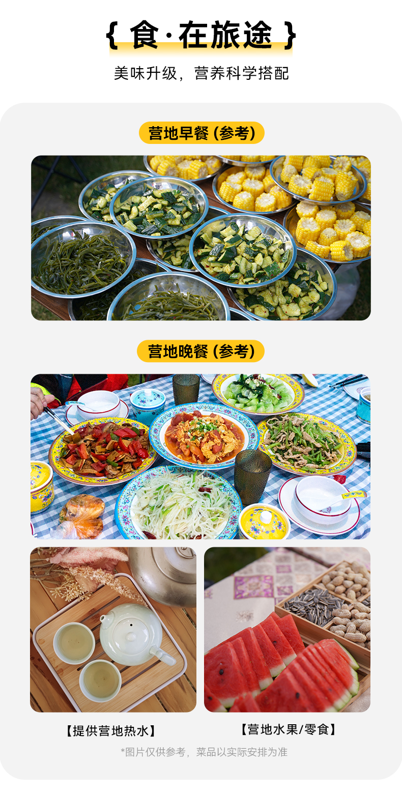 2、餐饮:老榆林早餐、上日乌且早晚营地餐;