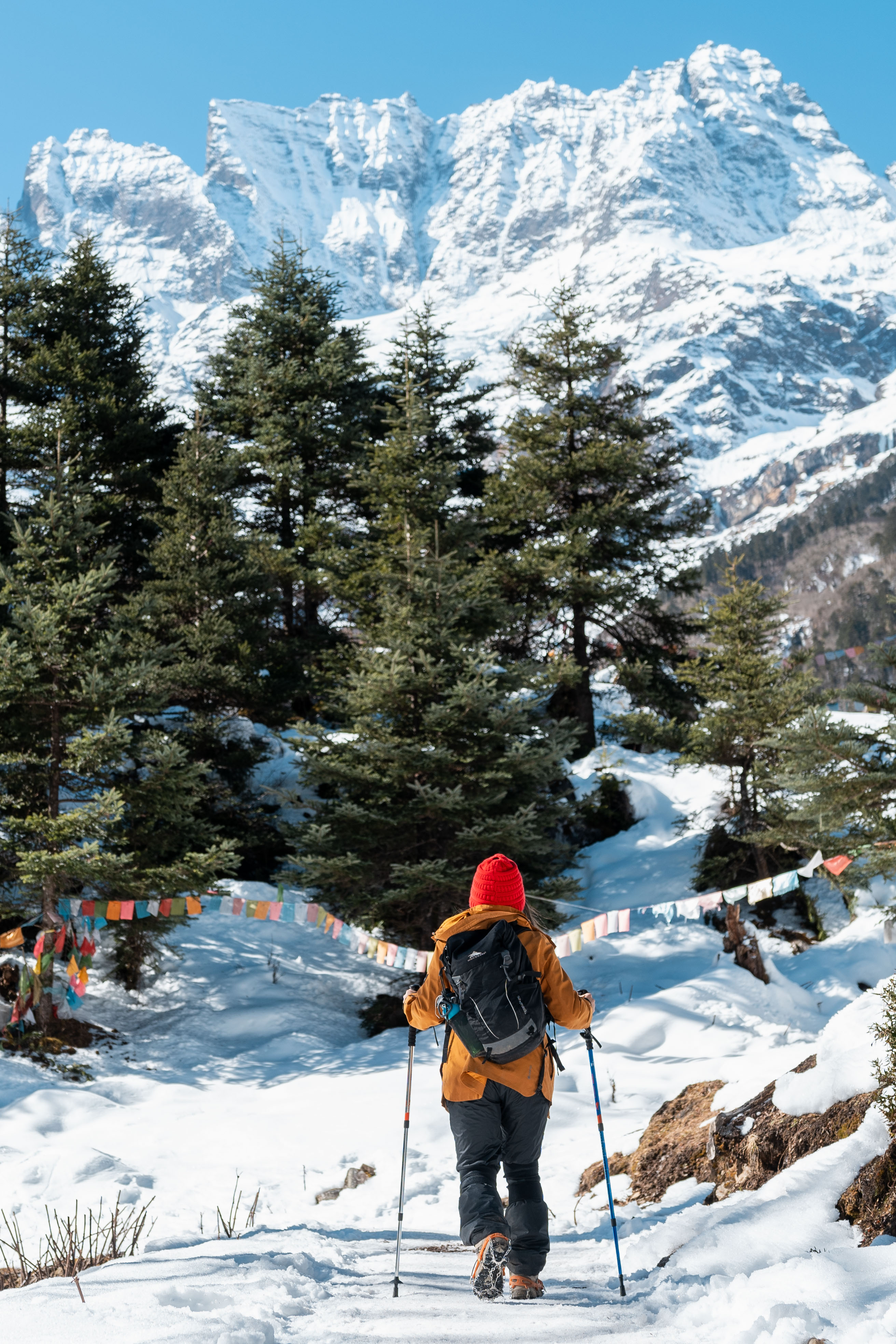 3.雨崩早晚比较冷,需准备手套、帽子、透气保暖内衣、加绒冲锋衣,冲锋裤,一件羽绒服备用,徒步过程中可能会比较热,需备速干衣。