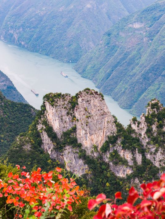 站在三峡之巅俯瞰长江的壮美和那满山的红叶。时间碰巧的话,在三峡之巅还有个人的音律表演。
