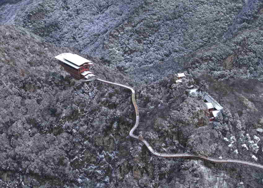 Panlong Ridge & Cloud-shrouded Plank Road — the first two-way suspended glass plank road in Northwest China—is adjacent to Huashan Mountain, known as “the Most Perilous Mountain Under Heaven”. The entire plank road stretches approximately 455 meters in length, with the glass section spanning 69 meters and measuring 2.5 meters in width. Its completion and opening have made it another precipitous scenic corridor in the Qianlong Temple Scenic Area of Shaohua Mountain Forest Park.