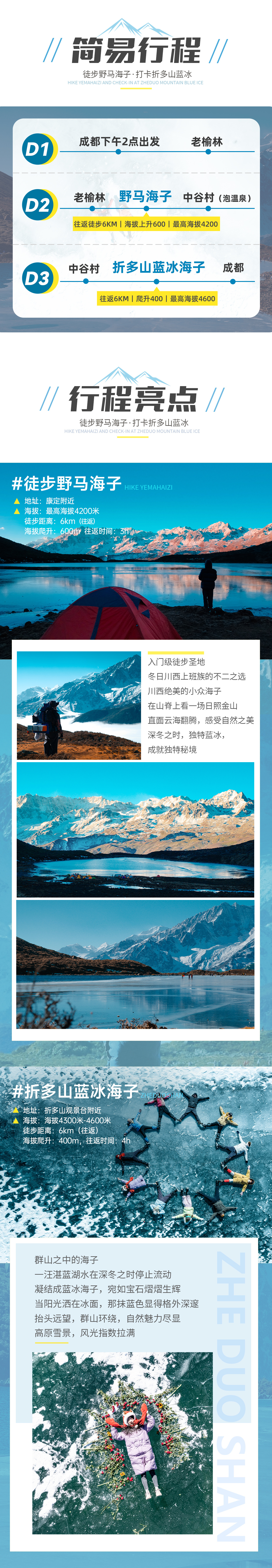 注: 折多山蓝冰海子海拔较高,不太建议新手前往;温度较低,请做好保暖工作。